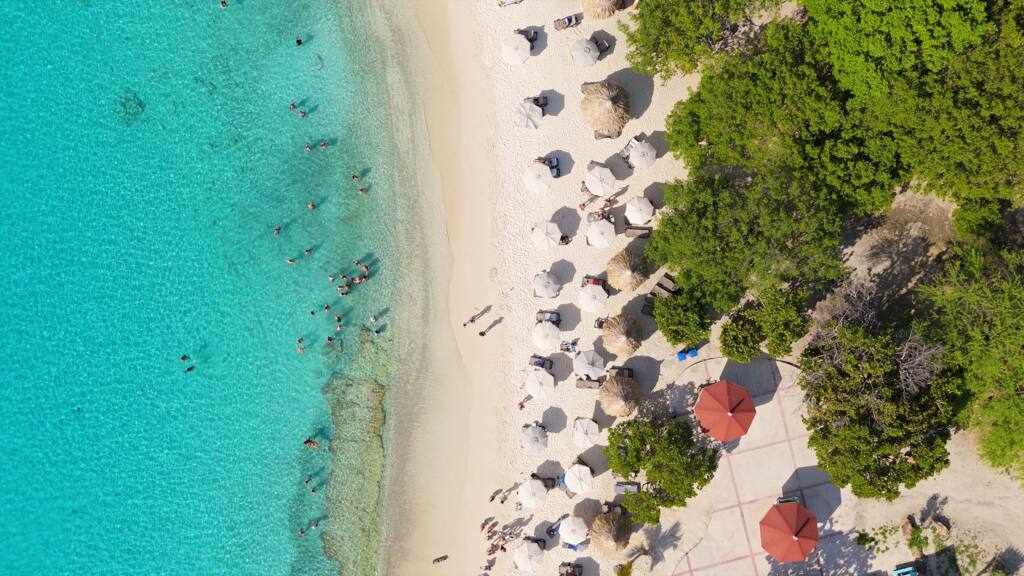 As you set foot on the soft, powdery sands of Grote Knip, you’ll immediately be enchanted by the panoramic views that unfold before you. The beach is embraced by rugged limestone cliffs, creating a sense of seclusion and natural splendor. The vibrant shades of blue in the water are simply mesmerizing, inviting you to take a refreshing dip or snorkel in the azure depths.